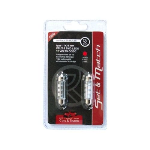 Lampe LED rouge 6LED navette 11x39mm/12V (2pièces)