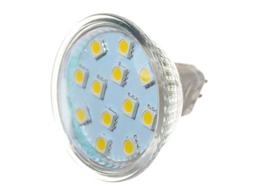 "• Vert • 10 V -> 30 V • 5 cm • Type MR16 • 200 lumen • Angle 120° • 2,4W Ampoule LED MR16 avec 12 LED SMD à 3 puces. L'avantage des LED SMD est que la diffusion de la lumière est très large et que par rapport à une ampoule MR16 normale, cette ampoule LED donne une lumière équivalente à 25 ~ 30 Watts. La diffusion de la lumière est de 120 degrés et l'ampoule LED a la même dimension qu'une ampoule MR16 traditionnelle avec ø50 mm. Celui-ci convient à une utilisation en extérieur, car les LED sont protégées derrière la vitre avant. Cette ampoule convient également pour une utilisation dans les installations photovoltaïques, les caravanes, les camping-cars et les bateaux, car elle dispose d'une régulation de tension intégrée de 10-30 Vdc."