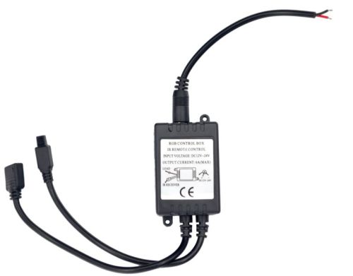 "Contrôle RVB robuste (télécommande IR sans fil + contrôleur) Avec ce contrôle, vous gérez: • 12V/24V • Par intermittence • Maximum 8 bandes • 15 couleurs différentes • Variateur • Stroboscope • Basculez entre différentes couleurs avec des transitions et des vitesses prédéfinies • Les piles (CR2025) pour la télécommande sont installées et incluses • REMARQUE: Bien que la bande Heavy Duty soit étanche, la commande ne l'est pas, elle doit donc être protégée de l'eau."