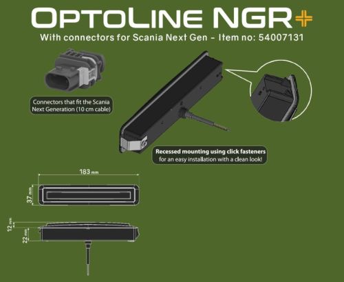 "OptoLine NGR+ est un feu de position conçu pour une installation encastrée avec un montage flexible. Grâce à ses supports à clipser intelligents et à son câble de 2 mètres, il s'installe facilement à différents endroits. Grâce à son indice de protection IP67, OptoLine NGR+ peut être installé en bas du véhicule sans risque de dégâts des eaux. Un joint en mousse est pré-monté sur le feu pour protéger la peinture. Fonctionne en 12 V et 24 V (10-48 V). Un gabarit est fourni pour une découpe facile à l'emplacement souhaité. Choisissez entre un éclairage blanc xénon (homologué ECE R148) et jaune-orange (grâce à un retour temporisé, le jaune-orange peut également être connecté à un clignotant ou à un feu à éclats si nécessaire, non homologué E). La couleur de l'éclairage est sélectionnée via différents câbles. OptoLine NGR+ s'adapte aux épaisseurs de panneau/tôle de 1 à 5 mm. Dimensions : Largeur : 183 mm Hauteur : 37 mm Profondeur : 22 mm Profondeur (totale) : 34 mm Dimensions d'encastrement : 179 mm x 28 mm Couleurs des câbles : Noir : Masse Blanc : Feu blanc xénon Jaune : Feu jaune-orange (peut également être connecté à un clignotant ou un feu à éclats, non homologué CE)"