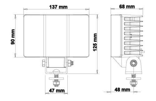 "LEDSON Hydra est une lampe de travail unique qui, grâce à son angle à trois niveaux, fournit une lumière ultra-large de 120 degrés ! Son faisceau est dit « diffus », ce qui signifie que la largeur de la lumière est grande dès le départ, comparée aux faisceaux larges dont la largeur apparaît plus tard, plus loin dans la lumière. Pour ceux qui veulent une lumière large jusqu’au bout ! Caractéristiques: Lampe de travail inclinée avec système optique « 3 en 1 » CISPR25 sécurisé CEM Classe 5 et R10 Faisceau diffus à 120° (lumière large) Lumen : 5600 (théorique) Lumière blanche froide (5700K) Portée 176 m (0,25 lux), 88 m (1 lux) Données techniques: 6 LED OSRAM 10 W IP69K : étanche et peut résister à l’eau à haute pression 4,2 A à 12 V et 2,1 A à 24 V Gestion électronique de la chaleur Boîtier en aluminium durable et lentille en polycarbonate Connecteur DT intégré Fonctionne à 9-36V Dimensions & poids : Largeur : 137 mm Hauteur : 90 mm (125 mm avec support/support) Profondeur : 68 mm Poids : 832g"