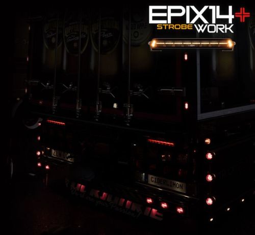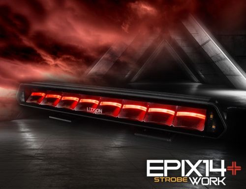 "Offrez-vous le meilleur. La série Epix+ se démarque de la foule avec une esthétique sportive au design unique, développée en pensant aux véhicules modernes d'aujourd'hui. EPIX14+ Work strobe est une barre de travail dotée de lumières stroboscopiques R65 approuvées qui assurent votre visibilité. Choisissez entre un feu de position rouge ou jaune-orange. EPIX14+ Work Strobe est la barre lumineuse de travail qui offre un look moderne et a les performances nécessaires pour répondre à toutes les conditions. Avec ses impressionnantes 120 W, cette barre offre une lampe de travail avec une portée de 119 m à 1 lux et un large faisceau lumineux de 120°, vous offrant une couverture lumineuse maximale sur une grande surface. Avec 7 300 lumens réels et une température de couleur de 5 000 K, il fournit un éclairage puissant et naturel qui facilite le travail dans toutes les conditions. Les supports intelligents Ledsons garantissent un montage pratiquement n'importe où et comme vous le souhaitez sur le véhicule. La barre est équipée de réflecteurs de la série Epix spécialement conçus avec allumage dynamique des feux de position. La couleur des feux de position est également sélectionnable entre jaune/orange et rouge, également homologuée pour un usage routier. L'Epix14+ Work Strobe est équipé de 10 modèles stroboscopiques différents, dont l'un est approuvé ECE R65. En connectant facilement deux unités ensemble, vous pouvez obtenir des modèles de flash synchrones et asynchrones entre elles. Utilisez votre barre lumineuse LED Epix14+ Work Strobe comme lampe de travail ou feu de recul (non approuvé R23) ; le stroboscope s'éteint lorsqu'il est activé, puis reprend immédiatement le motif de clignotement précédemment sélectionné lorsque vous éteignez à nouveau la lampe de travail. Feu de position à allumage dynamique unique, intégré au réflecteur Feu de position sélectionnable en rouge ou jaune/orange Modèle de lumière large de 120° Portée : 119 m (1 lux) 9'800 lumens (théorique), 7'300 lumens (réel) Température de couleur 5000K (blanc neutre) 120 W (8 LED de 15 W) Tension : 9-36 V IP69K (eau/poussière) Boîtier en aluminium et lentille en polycarbonate Optique réfléchissante latérale Membrane d'équilibrage de pression Gestion électronique de la chaleur Connecteur DT (fourni) 7,1A à 12V et 3,5A à 24V Marqué E ECE R148 (R1, SM1), R65 et R10 (classé EMC) Fourni: Barre LED stroboscopique de travail Epix14+ Boulons et vis pour fixer la barre à la surface appropriée Détails de montage intelligents Câble DT 6 broches Largeur : 357 mm Hauteur : 43 mm Profondeur : 61 mm Poids : 1,2 kg 10 modèles de flash"