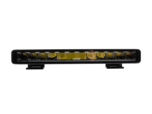"Tout est dans les détails - et ce détail attire vraiment l'attention ! Orbix14+ (14") de Ledson est équipé d'un feu de position moderne à allumage dynamique. Le feu de position Orbix14+ s'allume avec un mouvement fluide unique qui guide la lumière d'un côté à l'autre de la barre avant de s'allumer. Une séquence dynamique qui vous distingue de la foule et élève l'apparence de votre véhicule à un tout autre niveau. La barre est marquée E selon ECE R149 et dispose d'un motif de faisceau Drive qui améliore de manière optimale les feux de route existants de votre véhicule pour atteindre à la fois plus longs et plus larges. Bien sûr, vous pouvez choisir d'avoir votre feu de position en blanc froid moderne ou en ambre plus brut. Un indice IP69K élevé et un boîtier en aluminium avec lentille en polycarbonate garantissent qu'Orbix+ vous offre une conduite plus sûre et une meilleure apparence, bien sûr avec la garantie imbattable de 36 mois de Ledson. • Feu de position à allumage dynamique, ce qui signifie qu'il s'allume avec un motif de mouvement • Feu de position sélectionnable, blanc ou orange • Marquage E ECE R149/R10 • Modèle lumineux « Faisceau de route » (large et allongé) • Portée 375 m à 1 lux et 750 m à 0,25 lux • 5 040 lumens (brut), 4 500 lumens (effectif) • Température de couleur 5 700 K (blanc froid) • Deux options de montage • 60 W (12 LED de 5 W) • Tension : 10-32 V • IP69K (étanche à l'eau et à la poussière) • Boîtier en aluminium et lentille en polycarbonate • Connecteur DT (inclus) • Barre LED Orbix14+ à une rangée • Pieds montés sur le côté • Supports coulissants (debout/suspendus) • Boulons et vis pour fixer la barre à la surface souhaitée • Connecteur DT • Instructions d'installation • Largeur : 367 mm • Hauteur : 42 mm • Profondeur : 58 mm • Poids : 1,45 kg"