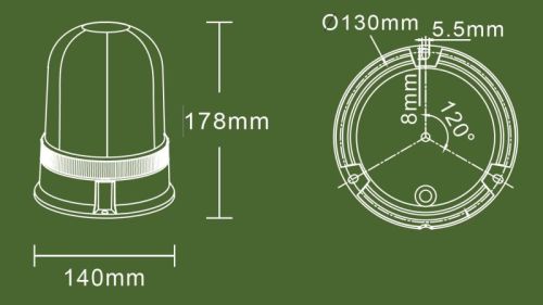 "Créez une présence forte sur la route et renforcez votre sécurité avec le feu stroboscopique LED OptoGuard Dome de Ledson, équipé de quatre modes d'éclairage. Son homologation E selon la norme ECE R65 et son câble pratique de 2,5 mètres garantissent une installation simple et efficace. Le dôme est équipé de 36 LED et est conçu pour un montage à plat. Grâce à son homologation et à sa protection CEM (CISPR25 classe 3), nous garantissons non seulement ses performances, mais aussi sa conformité aux normes de sécurité les plus strictes. De plus, son indice de protection IP67 garantit un fonctionnement fiable par tous les temps, grâce à sa conception résistante à l'eau et à la poussière. Le changement de mode d'éclairage s'effectue à l'aide d'un bouton situé à l'intérieur du verre. Veillez à bien revisser le couvercle en verre après chaque changement de mode afin d'éviter toute infiltration d'humidité dans le feu d'avertissement. 12 V/24 V Dimensions : Hauteur : 178 mm Largeur : 140 mm Entraxe : 130 mm (trois trous, ISO 4148) Diamètre : 5,5 mm Couleurs des câbles : Rouge : Plus (+) Noir : Moins (-) Tous les modes de fonctionnement sont homologués R65. Vous pouvez choisir parmi les modes suivants : 1. Rotation 2. Simple flash 3. Double flash 4. Quad flash"
