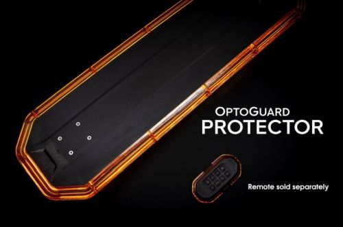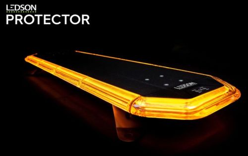"La barre lumineuse de signalisation Ledson OptoGuard Protector est d'une finesse exceptionnelle (seulement 26 mm d'épaisseur) et bénéficie d'une conception aérodynamique pour une résistance à l'air minimale. Toutes les longueurs sont conformes à la norme ECE R65 classe 2. La classe 2 garantit un mode nuit avec intensité lumineuse réduite. Deux options élégantes s'offrent à vous : une lentille transparente ou une version fumée au design mystérieux. La gamme Protector est également équipée du mode triple clignotement (alternance gauche/droite) pour une utilisation de jour comme de nuit. • Marquage E : ECE R65 classe 2 - Plus d'informations sur la réglementation UNECE ici Les longueurs, comprises entre 775 mm et 2306 mm, se fixent à l'aide de supports de toit universels pour rails ou des pieds fournis. Elles sont commandées par câble ou par télécommande sans fil (réf. 03409646, non fournie). • Compatibilité électromagnétique : ECE R10, CISPR25 classe 3 • Modes stroboscopiques : 13 ou 17 différents, selon la longueur • Puissance : 80 W à 236 W (selon la longueur) • Verre : Transparent • Couleur de la LED : Orange • Tension : 10-30 V • Indice de protection : IP67 (Étanchéité) • Garantie : 36 mois • Longueur : 317 mm à 2306 mm • Largeur : 220 mm • Hauteur : 26 mm • Longueur du câble : 5 m (Support magnétique : 2,4 m ; Vis centrale : environ 0,5 m)"