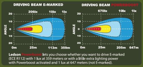 "L'Epix10+ de Ledson est une gamme innovante de feux auxiliaires qui subliment votre véhicule. Avec leur design suédois (développé en interne par Ledson) et leurs performances exceptionnelles, ces feux auxiliaires confèrent à votre véhicule un look unique et exclusif qui ne passera pas inaperçu ! Profitez d'une luminosité et d'un design exceptionnels, en parfaite harmonie. Feu de position dynamique L'Epix10+ active son feu de position de manière dynamique, avec un mouvement de balayage impressionnant qui guide élégamment la lumière d'un côté à l'autre du feu auxiliaire avant de l'illuminer complètement. Cet effet confère à votre véhicule et à vous-même une signature unique et distinctive. Powerboost contrôlé par impulsions : une fluidité irréprochable L'Epix10 est équipé du Powerboost de Ledson, un mode de puissance supplémentaire pour les moments où vous avez besoin (ou souhaitez simplement) d'une luminosité maximale. Une simple pression sur le levier des feux de route active cette luminosité impressionnante, vous permettant d'ajuster facilement la puissance du feu auxiliaire selon vos besoins. Avec la nouvelle génération de Powerboost de Ledson, changez facilement de mode en utilisant le feu de route en quelques étapes simples. Remarque : votre éclairage auxiliaire est livré en mode homologué E. Veuillez suivre les instructions pour activer le mode Powerboost. Feu de position sélectionnable à activation dynamique (jaune-orange ou blanc xénon, connectez la couleur de votre choix) Portée en mode homologué E : 359 m (1 lux) Portée en mode Powerboost : 647 m (1 lux) Faisceau de route : Améliore le faisceau de route standard du véhicule Marquage E : ECE R112 (réf. 30), R7 (feu de position blanc) - En savoir plus sur la réglementation CEE-ONU ici Certifié CEM : ECE R10 (ne perturbe pas les transmissions radio) Mode homologué E : 2 640 lumens (théorique), 2 112 lumens (réel) Mode Powerboost : 11 500 lumens (théorique), 8 200 lumens (réel) Lumière blanche neutre : 5 000 K ETM (Electronic Thermal Management) : Adapte la puissance de la diode en fonction de la température pour une durée de vie optimale Réflexion latérale Système optique Membrane d'équilibrage de pression Dissipateur thermique en aluminium Monture réglable en acier inoxydable Lentille en polycarbonate Garantie de 36 mois Caractéristiques techniques : 150 W (10 LED Cree de 15 W) Puissance nominale : 150 W (Powerboost) IP69K (étanchéité à l'eau et à la poussière) Câble avec connecteur DT à 4 broches Tension : 9-36 V Charge en mode homologué E : 2,2 A à 12 V et 1,1 A à 24 V (feux de route uniquement, sans feu de position) Charge en mode Powerboost pour feux de route : 10,6 A à 12 V et 4,8 A à 24 V (feux de route uniquement, sans feu de position) Dimensions et poids : Largeur : 247 mm Hauteur : 145 mm (support inclus) Profondeur : 86 mm Poids : 1,6 kg Inclus : Un feu auxiliaire LED Ledson Epix10+ 10 pouces Support de fixation, boulons et vis pour points de fixation simples ou doubles Connecteur DT (4 broches) (un faisceau DT (disponible ici) est également nécessaire) Instructions d’installation (voir le PDF ici) Instructions de câblage (instructions détaillées incluses) Rouge : Feu auxiliaire (+) Noir : Feu auxiliaire / Feu de position (- Masse) Blanc : Feu de position (+) Feu blanc Jaune : Feu de position (+) Feu jaune-orange Remarque : Le connecteur DT ne doit pas être coupé, car cela augmente le risque de dommages dus à l’humidité et annulerait la garantie. "