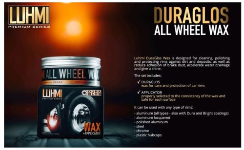 "• Cire très efficace pour nettoyer, polir et protéger vos jantes • Convient à tous les types de jantes, également aux jantes Durabright • Pour les jantes Alcoa Durabright mais aussi pour les jantes peintes ! • Nettoie, polit (légèrement) et protège vos jantes contre la saleté et la poussière de frein • Donne un éclat ultime • Sûr à utiliser sur les jantes polies et peintes ainsi que sur les capuchons d'écrou de roue en plastique • Livré avec un applicateur pour appliquer cette cire • 250 grammes par pot"