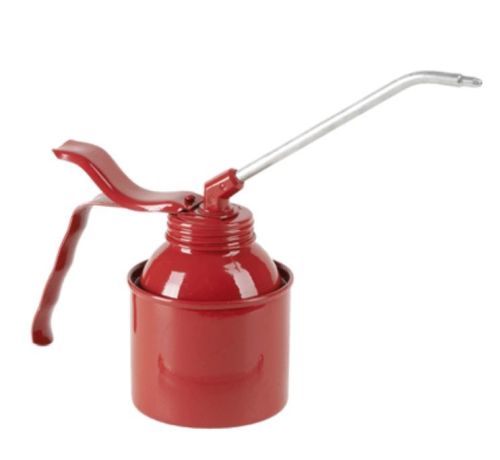 Bidon d'huile en métal avec pompe et bec 200 ml Modèle pompe avec paille fixe Corps en tôle d'acier peinte Poignée ergonomique Bec en métal Capacité du réservoir 200 ml Parfait pour les ateliers mécaniques ou les travaux de lubrification de bricolage