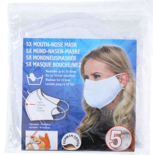 Masque de bouche BLANCHE réutilisable 2 plis (5-pièces)