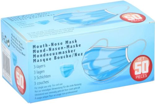Masque de protection BLEU 3-couchesjetable (50pièces) CE-ho