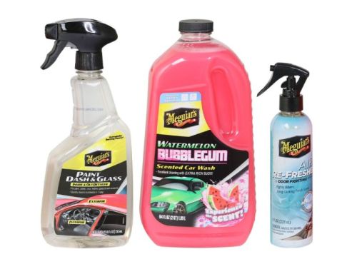 "• Meguiar's Watermelon Bubblegum Wash • Meguiar's Paint Dash & Glass • Meguiar's New Car Air Refresher Trigger + Car Enthousiast Kit Box Le kit Meguiar’s pour passionnés d’automobile est idéal pour tous ceux qui souhaitent apprendre à entretenir leur voiture avec des résultats professionnels. Spécialement formulé par Meguiar’s Belgique, ce kit économique contient tout le nécessaire pour nettoyer et raviver la peinture, l’intérieur et les vitres de votre véhicule. Contenu du kit : - Nettoyant intérieur et extérieur pour peinture, vitres et tableau de bord : un nettoyant pratique pour la peinture, le plastique, les vitres et plus encore. - Shampoing pour voiture parfumé à la pastèque et au chewing-gum : un shampoing agréablement parfumé qui élimine sans effort la saleté et la graisse. - Désodorisant d’ambiance parfum voiture neuve : neutralise les odeurs désagréables et laisse un parfum frais de voiture neuve. Pourquoi choisir ce kit ? • Idéal pour les débutants ou comme cadeau pour tout passionné d’automobile. • Alliant qualité, facilité d’utilisation et plaisir, ce kit est abordable. • Fait partie de la nouvelle collection de kits de detailing Meguiar’s, développée en Belgique pour tous les professionnels de l’entretien automobile, du débutant au perfectionniste."