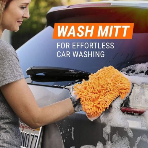 "Le gant de lavage hybride en céramique de Meguiar's peut être utilisé en plus du produit de lavage et de cire hybride en céramique de Meguiar's. Le gant de toilette double face est fourni avec différents types de microfibres. Le côté orange retient la mousse et soulève la saleté de la peinture automobile, minimisant les risques de tourbillons et de rayures de cire. Le côté gris peut être utilisé sur la partie lavée pour répartir uniformément le booster SiO2. Gant de toilette de haute qualité Les gants de toilette sont une partie essentielle de chaque lavage. Le gant de lavage hybride en céramique de Meguiar's a de longues fibres pour ramasser les contaminants et un côté pelucheux pour appliquer un booster, un scellant, une cire ou un detailer. Comment utiliser le gant de lavage hybride Meguiar's ? Passez le gant de lavage de voiture dans un seau rempli plusieurs fois et essorez-le. Laver le véhicule avec le côté orange. Retournez-vous et passez à nouveau sur la même zone avec le côté gris. Le gant de toilette peut être lavé dans la machine à laver. N'utilisez pas d'adoucissant car cela obstruerait les microfibres et réduirait les performances. Lavez toujours avec des chiffons similaires (pas de coton) pour maintenir des propriétés anti-salissures appropriées. Facultatif : ajoutez 1/4 tasse de vinaigre blanc distillé pour augmenter la douceur. Comprend le gant de lavage hybride en céramique Meguiar's Gant de lavage de voiture multifonctionnel La dentelle orange est en microfibre chenille La dentelle grise est faite de peluche Coutures doubles Lavage de voiture sans rayures Convient à toutes les peintures de voiture Convient à tous les shampooings de voiture"