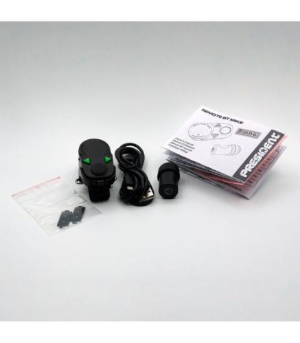 "Le microphone et le dongle President Remote BT peuvent être connectés à n’importe quel connecteur de microphone President à 6 broches. C'est la solution optimale pour la communication mains libres, notamment dans les véhicules. Le dongle Bluetooth s'insère dans la prise microphone de la radio President CB et l'unité de commande se fixe solidement au guidon. Sur la centrale, à côté du bouton PTT, se trouvent les boutons UP et DOWN pour changer de chaîne sur la radio, afin que vos mains puissent rester sur le volant. La capsule du microphone est également située dans l'unité de commande et est équipée d'une suppression du bruit, rendant le bruit de fond pratiquement inaudible pour l'autre partie. Il suffit d'appuyer une seule fois sur le bouton PTT pour démarrer la transmission. Une nouvelle pression arrête la fonction de transmission. Compatible avec toutes les radios PRESIDENT CB 6 broches et 10M actuelles. • Remote Bluetooth Microphone • Steering Wheel Control • Microphone • PTT • Settings • NRC 5-Levels • Channel Selector • Charging by USB Cable • Dongle 6-Pin for president Wiring • Weight: 52 gram"