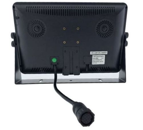 "Écran : Moniteur HD numérique quadruple de 10,1 pouces (256 mm) Résolution d'affichage : 1024 RVB (H) x 800 (V) points Système couleur TV : NTSC/PAL Menu OSD : Luminosité ; Contraste; Couleur; Mode; Langue ; Miroir ; Délai de retour ; Ligne directrice; Réinitialiser Support de montage en U Entrée vidéo : 4 voies • Luminosité : 450cd/m2 / Contraste : 500:1 Connexion par câble à 14 broches / longueur de câble de 1 500 mm Audio : Oui / Entrée : 1 canal audio Dimensions : 252 mm * 166 mm * 32 mm Approuvé ECE REG 10 • Indice de protection IP : IP54 Température de fonctionnement : -20°C - +70°C 4 entrées caméra"