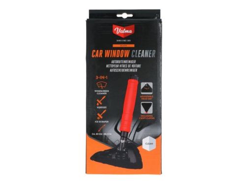 "Nettoyeur 3 en 1 multifonctionnel Valma pour le nettoyage des vitres de voiture, à l'intérieur comme à l'extérieur. Grâce au nettoyeur 3 en 1 et au chiffon doux en microfibre, vous nettoyez rapidement l'intérieur des vitres sans laisser de traces. La tête flexible rotative à 360° avec lame triangulaire permet également d'accéder facilement aux coins. Le chiffon en microfibres a une grande capacité d'absorption. Il est idéal pour éliminer la condensation ou pour servir de raclette. Sans le chiffon en microfibres, le nettoyeur peut également être utilisé comme grattoir pour dégivrer les vitres et le pare-brise. La poignée en mousse douce, comfortable et télescopique est extensible et réglable de 30 à 48 cm environ. Livré avec 2 chiffons en microfibres extra doux. Les chiffons peuvent être lavés en machine à 40 degrés. • Nettoyeur 3 en 1 multifonctionnel pour le nettoyage des vitres de voiture • Idéal pour éliminer la condensation et pour servir de raclette ou de gratte-givre • Tête flexible rotative à 180° et poignée extensible réglable de 30 à 48 cm"