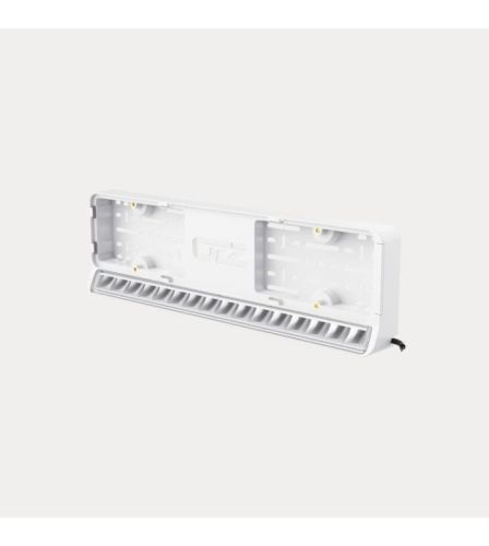 "Une solution simple mais efficace. Ce support de plaque d'immatriculation est déjà équipé d'une barre LED suspendue. Grâce à sa couleur blanche, il s'adapte parfaitement aux pare-chocs blancs, idéal pour les camping-cars et les voitures, par exemple. Cette barre LED est ultra-élégante et offre un faisceau lumineux large et lointain, garantissant une visibilité parfaite sur la route. L'installation est facile. Il suffit de remplacer l'ancien support de plaque d'immatriculation par celui-ci et de connecter la barre LED à la batterie et aux feux de route. Ce support de plaque d'immatriculation LED produit 4880 lumens effectifs, offrant une portée allant jusqu'à 450 mètres. Conçu pour résister aux conditions difficiles, il est doté d'un boîtier en aluminium et d'une lentille en polycarbonate pratiquement incassable et étanche. Nombre de LED : 16 Matériau du boîtier : Aluminium Longueur du câble : 200 cm Connecteur : Connecteur Deutsch à 3 broches Puissance : 88 W Couleur du boîtier : Blanc Matériau de la lentille : Polycarbonate Couleur de la lentille : Transparent Indice de protection : IP69K Connecteur : Connecteur Deutsch Tension : 10-32 V Consommation : 12 V : 7,33 A / 24 V : 7,33 A Dimensions : 451 - 600 mm Dimensions : 535,2 × 40,7/57,5 × 157 ECE-R10, ECE-R148 Lumens : 9 600 Lumens Lumens réels : 4 880 Lumens Image lumineuse : Faisceau de route Portée : 1 lux à 450 m"
