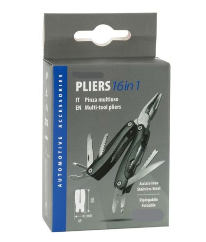 "• Pince 16 en 1, pince de poche multifonction • Acier inoxydable • Qualité professionnelle • 100 x 45 mm (fermé)"