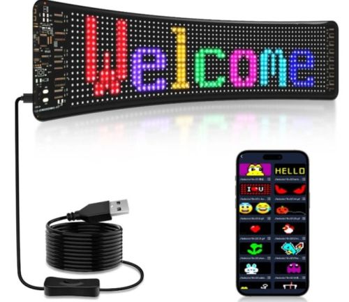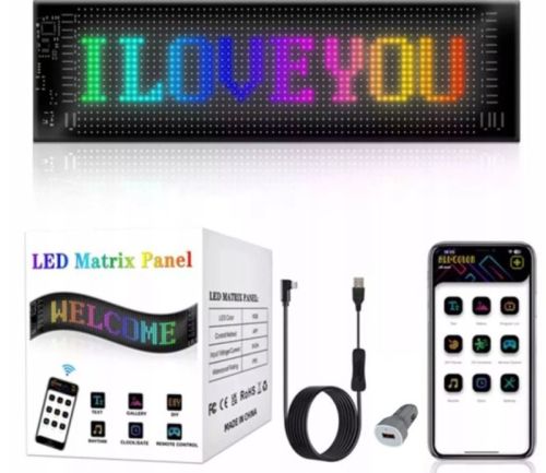 "Panneau LED MATRIX 59,5 x 12 cm USB 7,5 W, 1526 LED - Certifié CE Un panneau LED multifonction tout en couleur conçu pour afficher du contenu visuel sur divers véhicules. Idéal pour les camions, fourgonnettes, voitures, camping-cars, ainsi que pour les vitrines et autres surfaces vitrées. Caractéristiques principales : • Écran LED programmable d'une résolution de 16 x 96 pixels (1536 LED) – idéal pour l'affichage de textes, graphiques, animations ou effets lumineux. • Contrôle via une application mobile depuis un smartphone (Bluetooth) – configuration simple et intuitive des effets. • Télécommande – accès rapide aux fonctions sans avoir à utiliser votre téléphone. • Effet RVB multicolore – palette de couleurs complète pour une visibilité et un impact optimaux. • Alimentation 5 V 2 A (7,4 W) – fonctionnement économe en énergie avec un long câble USB (4,5 m) pour une connexion facile. • Format compact – seulement 12 × 59,5 cm, permettant une installation flexible sur différentes surfaces. • Étanchéité IP65 – Idéal pour une utilisation en extérieur, résistant à la pluie et à la poussière. • Matériaux de haute qualité – Fabriqué en PU et FPCB flexibles, garantissant durabilité et facilité d'installation, par exemple sur des fenêtres."