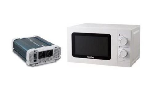 • Micro-ondes 20 L • Convertisseur sinusoïdal 24 V/1 500 W • Micro-ondes avec plateau tournant • 5 niveaux de puissance • Dimensions du four à micro-ondes : 439 x 258 x 333 mm • Onduleur à onde sinusoïdale pure • Puissance nominale de 1500 W / tension de crête de 3 000 W • Protection contre les surtensions et les courts-circuits • Dimensions de l'onduleur : 310 x 235 x 109 mm