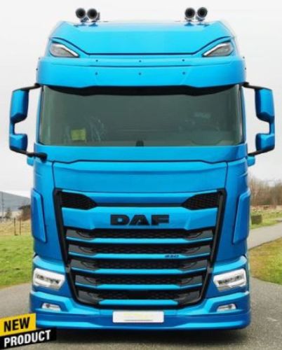 Pare-brise DAF NGD XF/XG/XG+ / Pour model avec rétroviseur CORNER EYE • Design unique • Produit en polyester de haute qualité • Facile à assembler • Looks fantastiques • Monté sur 5 points • A démonter pour ouverture de la grille et/ou inspection • La caméra reste fonctionnelle • Livré en gelcoat blanc non peint. Doit être testé avant la pulvérisation.