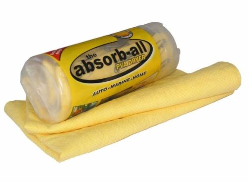 "L'Absorb-All est un chamois ultra absorbant qui sèche immédiatement les surfaces car il absorbe l'eau ultra-rapide. Il peut même absorber jusqu'à cinq fois son propre poids en eau. Le chamois se déchire facilement et résiste à la déchirure. Sèche parfaitement sans stries. Idéal pour les voitures, bateaux, fenêtres, salles de bain, etc. Absorbe jusqu'à 5 fois son poids en eau. Ne peluche pas. Excellente résistance aux huiles et aux produits chimiques. Lavable en machine. Livré en tube."
