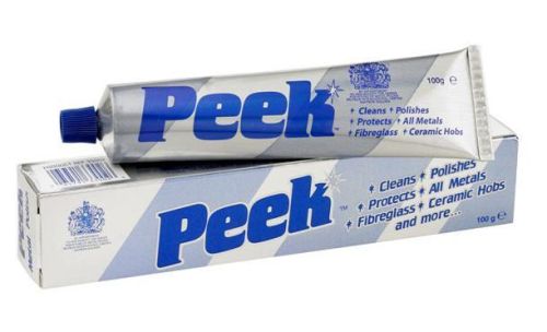 "Essayez-le et étonnez-vous du résultat! Lustre, nettoie, restaure et protège tous les métaux. Laiton, cuivre, acier inox, argent, or, chrome, bronze, aluminium, plexiglas et plus encore! Peut être utilisée sur nombreux types d'objets dans l'industrie automobile, le transport maritime, la restauration, le ménage, et plus. Enlève entre autres l'oxydation, la rouille, des taches ternes ... Peek laisse après utilisation une COUCHE DE PROTECTION durable. "