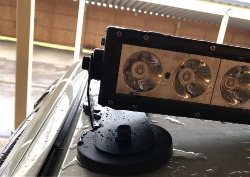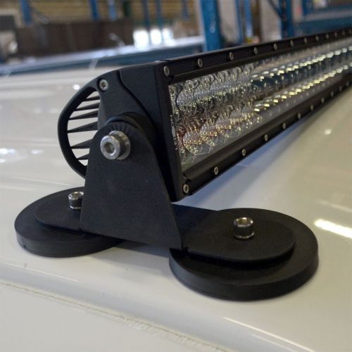 "Ces supports magnétiques sont livrés par paire et sont parfaits si vous souhaitez monter une barre LED, des phares de travail, des feux auxiliaires, etc. sans affecter le véhicule avec des vis et des perçages. Que vous souhaitiez des supports plus petits ou plus grands dépend de la taille et du poids de votre éclairage et de l'endroit où il est placé (résistance de l'air). Généralement, une barre mesurant jusqu'à 30" (80 cm de long et 4 kg de poids) devrait fonctionner avec le modèle plus petit tandis qu'une barre plus grande de 41" (environ un mètre de long et 6 kg de poids) nécessitera le modèle plus grand. En cas de doute, choisissez toujours le modèle le plus grand. REMARQUE : Comme la nature de la voiture (comme l'épaisseur de la tôle, le vernis, etc.) ainsi que la taille et le poids de l'éclairage diffèrent d'un cas à l'autre, le bon sens s'applique lors du montage. Par conséquent, veillez toujours à ce que le support soit adapté à l'utilisation prévue ! Dans certains cas exceptionnels, les supports magnétiques peuvent être défectueux et un autre type de montage peut être plus sûr. Grand modèle : • Nombre d'aimants : 24 pièces (12 dans chaque pied) • Longueur : 206 mm • Largeur : 87 mm (pied) • Profondeur / Hauteur : 80 mm (des pieds jusqu'au bord supérieur du support) • Distance au point de fixation : 57 mm (de la plaque située sur les pieds jusqu'au centre du trou de fixation)"