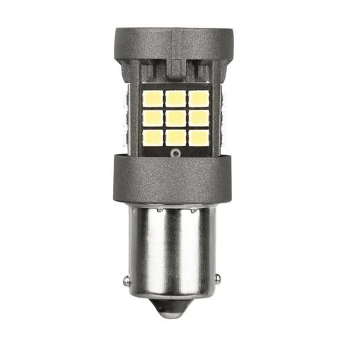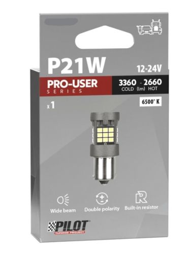 "Série Pro-User 12/24 V - (P21 W) - BA15s - 1 pièce - Boîte - Blanc - Double polarité - Résistance intégrée Ampoules LED de dernière génération. Développées avec la technologie Halo-Led et miniaturisées, elles remplacent les ampoules à incandescence classiques avec culot pour une utilisation à l'intérieur comme à l'extérieur du véhicule. • LED à faible émission de chaleur • Flux lumineux très élevé (lumens), à froid comme à chaud • Puissance élevée en watts • Compatible avec les véhicules équipés d'un système CAN-Bus (empêche l'allumage du témoin lumineux) • Dimensions : 20,5 x 49,2 mm "