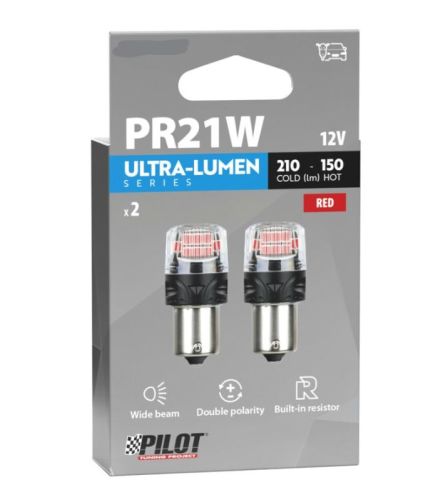 "Série Ultra-Lumen 12 V - (PR21W) - BAU15s - Lot de 2 - Rouge - Double polarité - Résistance intégrée Lampes LED de dernière génération. Développées avec la technologie Halo-Led et miniaturisées, elles remplacent les ampoules à incandescence classiques avec culot pour une utilisation à l'intérieur comme à l'extérieur du véhicule. • LED à faible émission de chaleur • Flux lumineux très élevé (lumens), à froid comme à chaud • Puissance élevée en watts • Compatible avec les véhicules équipés d'un système CAN-Bus (empêche l'allumage du témoin lumineux) • Dimensions : 20,4 x 44,6 mm"