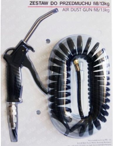 "• Connexion au tableau de bord SCANIA • pistolet - en plastique avec une pointe en métal, • câble spiralé fi 8 mm, longueur 5 m en matériau PU souple, résistance 15 kg/cm2 Pistolet soufflant avec tuyau et té inclus. Simple et pratique à utiliser. Il est utilisé pour éliminer les contaminants avec un jet d'air comprimé. Cela fonctionne particulièrement bien dans les endroits difficiles d’accès où les méthodes traditionnelles sont inefficaces. Le produit peut être utile pour éliminer l’humidité, la poussière et divers types de copeaux (bois et métal) des composants des machines et des équipements. Le pistolet est durable et résistant aux dommages mécaniques. Equipé d'une longue buse coudée à son extrémité. Parfait pour nettoyer l'intérieur du véhicule."