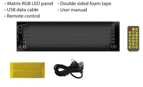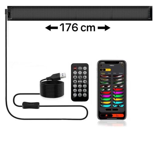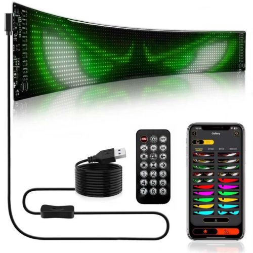 "Écran LED matriciel flexible – Panneau RVB programmable ! Ultra-fin, flexible et autocollant, personnalisez votre véhicule avec un écran LED programmable ! Facile à installer et à connecter, personnalisez-le selon vos envies et vos besoins. Idéal pour un montage sur n'importe quelle vitre de véhicule, il est également idéal pour un usage domestique grâce à son alimentation USB et son câble de 440 cm. La puissance de sortie recommandée pour l'adaptateur/chargeur est de 2 A. Principales caractéristiques : • 1762 mm (hauteur 192 mm) – compatible avec la plupart des pare-brises de voiture • Attirez l’attention et affichez votre style • Affiche du texte, des graphiques et des animations (yeux mobiles/yeux diaboliques, par exemple) • Choisissez l’affichage à l’aide de la télécommande sans fil incluse • Créez des messages, des motifs ou des animations personnalisés directement dans l’application conviviale • Le support autocollant maintient l’appareil en place, tout en le repositionnant facilement si nécessaire • Une façon audacieuse d’exprimer votre personnalité, de partager un message ou de moderniser votre véhicule Inclus : • Panneau LED RVB matriciel (choisissez la taille dans le menu) • Câble USB de 440 cm • Télécommande • Ruban adhésif double-face • Manuel"