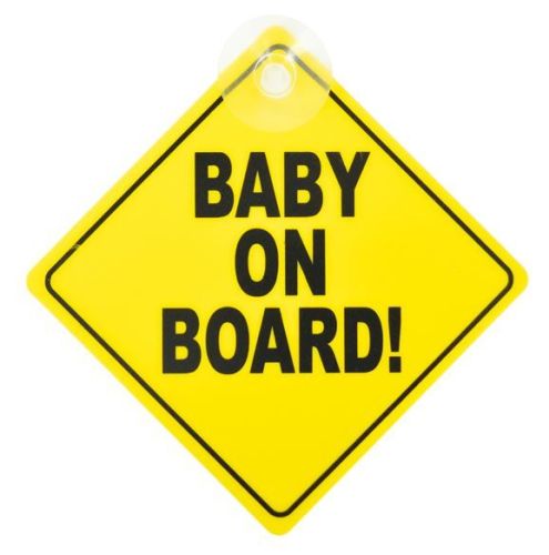 Plaque "Baby on board!" jaune + ventouse