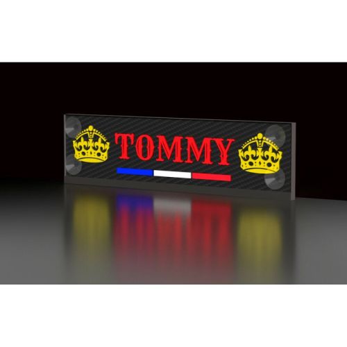Plaque CARBON led blanc RGB "votrenom" 13,5cmx70cm + téléco