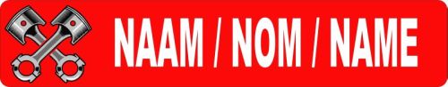 Plaque airbrush 52x11cm Pistons rouge + nom