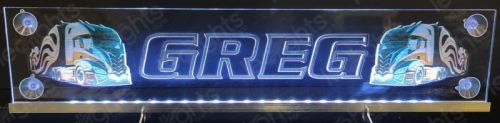"• 24V RVB (Toutes les couleurs rouge, vert, bleu, blanc, violet, rose, ...) • Toutes les types de lettrage + impressions couleur possibles • Fournissez votre propre logo si vous le souhaitez (photo camion, voiture, club, enfant, animal, ...) • Vous recevrez un échantillon pour approbation • Télécommande + prise allume-cigare incluse • Délai de livraison en moyenne 4-6 semaines"