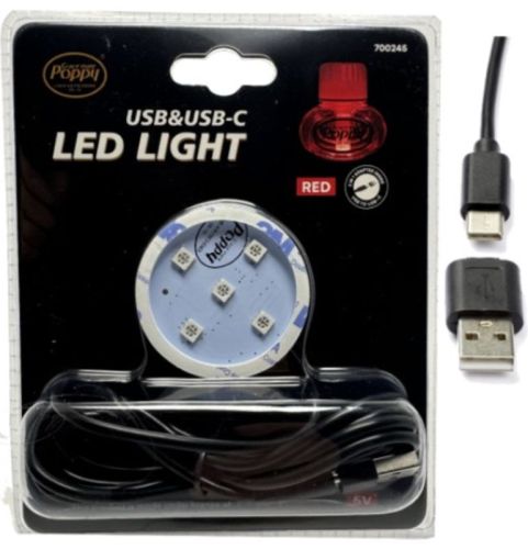 Poppy éclairage à LED ROUGE 5V (prise USB-C + USB-A)