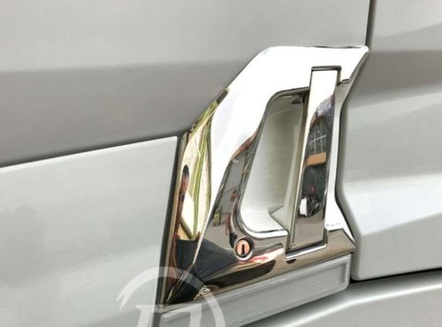 Application super miroir en acier inoxydable pour Renault T. Le kit se compose de quatre pièces (deux pour la droite et deux pour la gauche) et comprend un adhésif double face pour la fixation. Bien façonner avant de fixer.