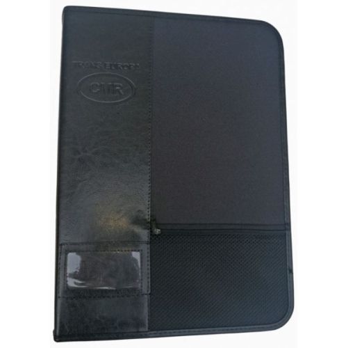 "Dimensions : 270x380x55mm Une mallette parfaite et complète pour les chauffeurs de camion. Taille conforme aux documents de transport CMR. Il comprend un mécanisme à anneaux pour 4 trous, une poche à charnière en tissu simili cuir + une poche supplémentaire avec une fenêtre fermée par une fermeture éclair, une planche avec un clip fixé par velcro et un étui pour tachygraphe. Le tout est fermé par une fermeture éclair. Revêtement extérieur : tissu imitation cuir."