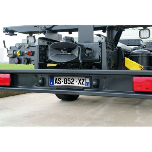 "Universel pour toutes les plaques d'immatriculation arrière européennes Convient pour la fixation sur voitures, camions, camping-cars, caravanes, remorques et porte-vélos. Antichoc, le polypropylène le rend souple et résistant aux chocs provoqués lors du stationnement. Préparé pour la fixation arrière, il s'adapte aux légères courbures du pare-chocs et de la carrosserie. Bande inférieure personnalisable Dimension : 531x146 mm Kit complet composé de tous les accessoires de montage : 1 support de plaque, 4 clips centraux en plastique, 8 entretoises en plastique, 4 vis autotaraudeuses, 4 rondelles métalliques, 3 boutons de fixation bleus, 1 bouton de fixation blanc"