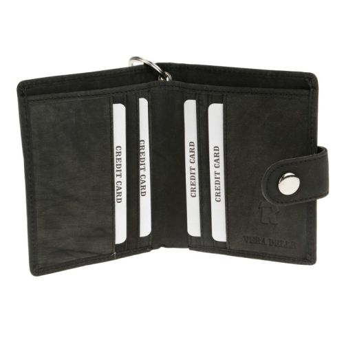 "• Extérieur en cuir véritable vintage • Intérieur 85 % cuir véritable + 15 % tissu indéchirable • 6 emplacements pour cartes de crédit • 2 grands compartiments pour billets ouverts • Poche externe avec fermeture éclair pour pièces de monnaie et autres • Fermeture à bouton-pression • Chaîne de 45 cm avec anneau et mousqueton • Système de protection RFID. • Dimension : 11x9,5x2 cm"