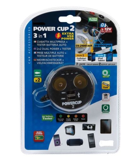Power cup "3en1" 2-voies/USB/testeur batterie