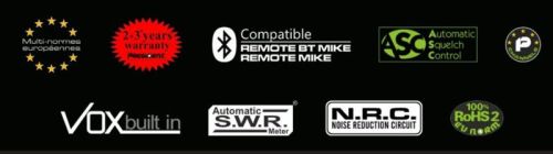 "Version UE 4W AM/ 4W FM 400 canaux Général: • Nombre de canaux : 400 • Mode de modulation : AM/FM • Gamme de fréquences : de 25.615 MHz à 30.105 MHz • Impédance de l'antenne : 50 ohms • Alimentation : 13,2 V / 26,4 V • Dimensions : 170 (L) x 150 (P) x 52 (H) mm • Format DIN • Poids : 750 grammes Transmission: • Fréquence autorisée : +/- 300 Hz • Capacité de charge : 5,5 W AM / 20 W FM • Interférence de transmission : moins de 4 nW (-54 dBm) • Réponse audio : 300 Hz à 3 kHz en AM/FM • Puissance transmise dans le canal adjectif : inférieure à 20 µW • Sensibilité du microphone : 3,0 mV • Drain : 2 A (avec modulation) • Distorsion du signal modulé : 1,8 % Description: • Émetteur-récepteur CB Mobile • Y compris DIN • Écran plus grand que le modèle Johnson-2 précédent • Gamme de fréquences : 400 canaux • Normes : 6 normes européennes • Mode de modulation : AM/FM • Puissance de sortie : 4 watts AM / 4 watts FM • Alimentation : 12 V / 24 V • Option mains libres : VOX intégré • Microphone : type à électret, 6 broches avec câblage President. • Sélection de canal haut/bas • Contrôle du volume et marche/arrêt • Squelch manuel et ASC • Écran LCD multifonctionnel • S mètre • Filtre ANL, NB et HI-CUT • Clé DX locale • Analyse des chaînes et de la mémoire • 3 souvenirs • Touche de fonction F • Fonction bip • Bip Roger • VOX intégré • Sélecteur de mode AM/FM • Double montre • Préréglage 9/19 • Connexion microphone à l'avant • Connexion d'un haut-parleur externe • Haut-parleur avant Réception: •Max. Sensibilité à 20 dB sinad : 0,5 µV – 113 dBm (AM/FM) • Gamme de fréquences : 300 Hz à 3 kHz en AM/FM • Sélectivité du canal adjacent : 60 dB • Puissance audio maximale : 3 W • Sensibilité du silencieux : minimum 0,2 µV – 120 dBm / maximum 1 mV – 47 dBm • Fréquence de suppression d'image : 60 dB • Fréquence centrale réj. Vitesse : 70 dB • Drain : 400 mA nominal / 1 000 mA maximum Contenu du paquet : Président JOHNSON-3 Cordon d'alimentation avec fusible Microphone UP/DOWN et son support Support de montage avec vis de montage Cadre DIN Manuel d'utilisation en anglais, français, espagnol et polonais"