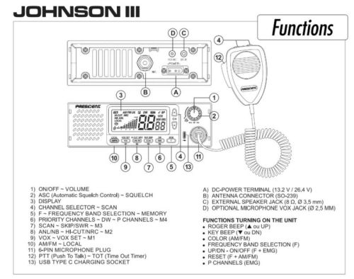 President CB Johnson III AM/FM Multi 12V/24V (400 canaux)
