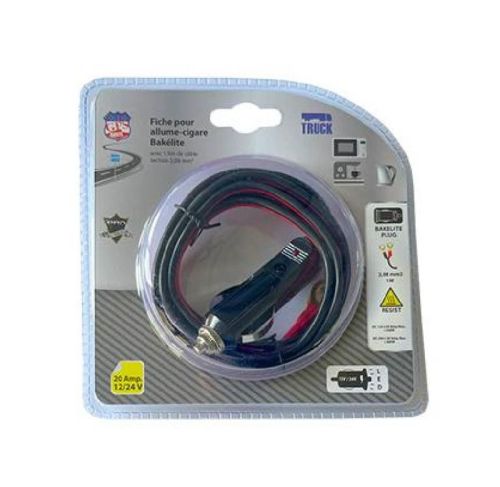 Prise allume-cigare bakelite+fil d'allimentation 12V/24V 20A