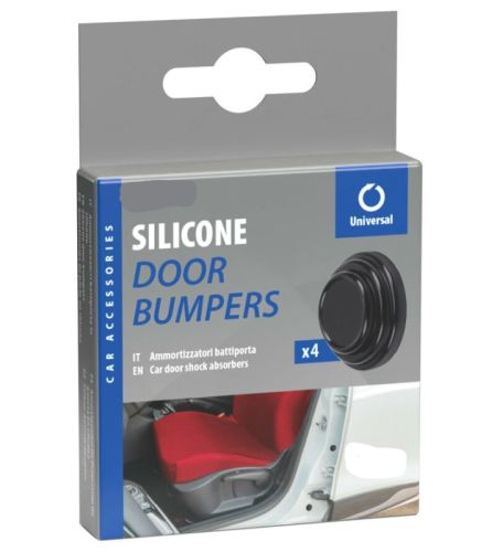 "Pare-chocs de porte en silicone, 4 pièces Ils réduisent les vibrations causées par la fermeture des portes, des coffres et des capots des voitures. Fabriqué en silicone Adhésif, facile à installer Dimension : Ø 26 x 8 mm"