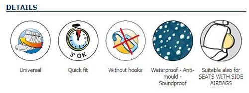 "Protège siège universèleavant iProtection contre salté, huile, boue et eau COMPOSITION: Polyester 100% "