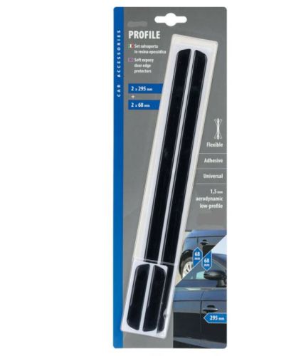 "• Protecteurs de bord de porte en époxy doux et noir, ensemble de 4 pièces - Noir • Protégez la peinture de la voiture des contacts accidentels • Adhésif spécial pour un ajustement parfait • 2x 14x295 mm + 2x 14x68 mm, épaisseur 1,5 mm"