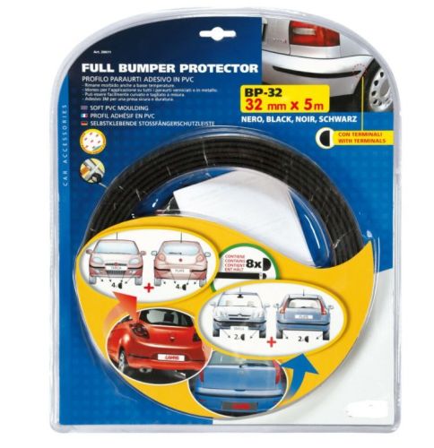 "Moulure en PVC souple. Reste doux même à des températures froides. Convient à tous les pare-chocs peints ou métalliques. Peut être coupé en 2 ou 4 sections. Ruban adhésif spécial 3M pour une prise sûre et durable. Kit de bricolage pour un véhicule, 5 m Inclus 8 terminaux"
