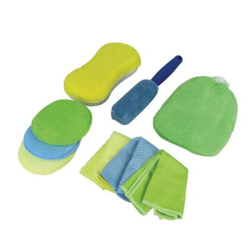 Contient: 3x lavette de microfibres + 3x coussin de microfibres + éponge microfibres + gant de lavage microfibres + brosse pour jantes microfibres