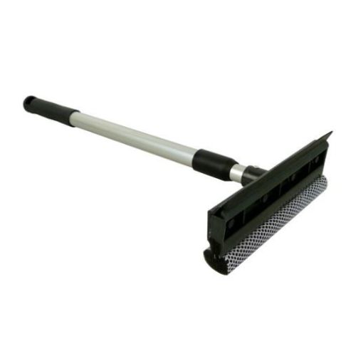 "Avec manche en métal télescopique, min. 40cm, max. 70cm. Éponge anti-insectes et raclette en caoutchouc, 20cm."